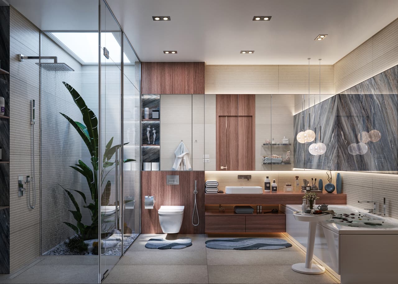 Our modern bathroom design embodies contemporary sophistication with seamless geometric lines.